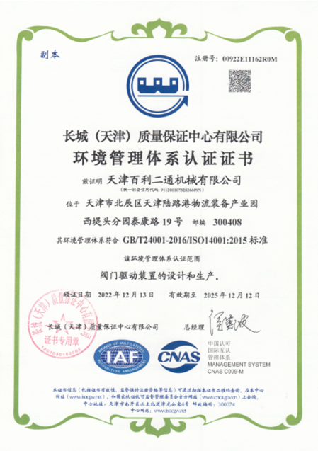 環(huán)境管理體系證證書
