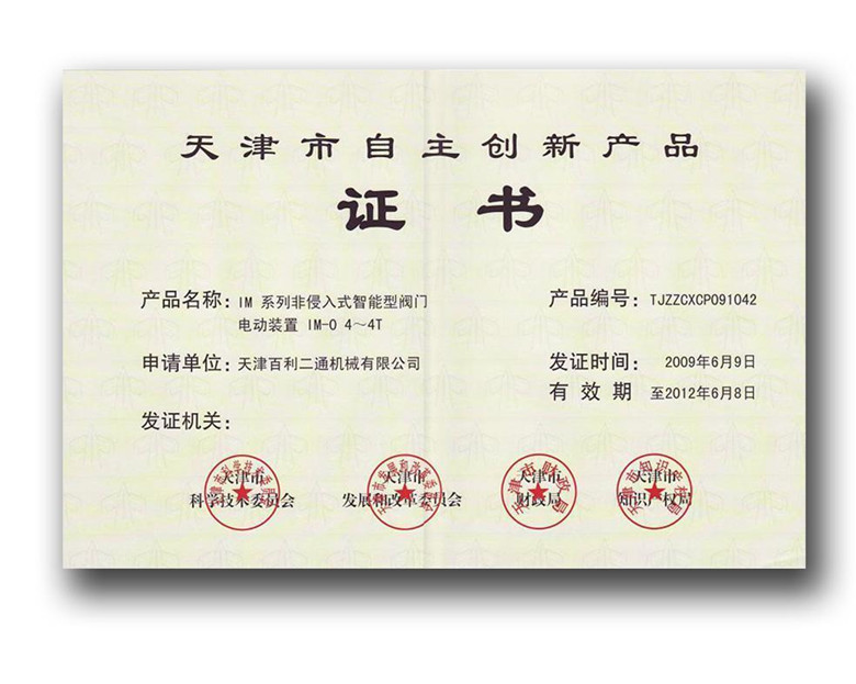 IM系列自主創新產品證書