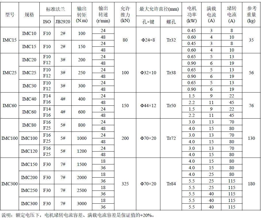 IMC系列技術參數(shù)表