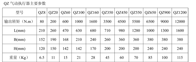 QZ系列閥門氣動裝置為輸出轉角90°的氣動執行器機構,可與球閥、蝶閥組成氣動閥門,也適用于90°回轉的其它機械裝置。本產品若配用電磁閥和定位器可以完成開關兩位置動作和連續動作,實現自動調節控制。可廣泛用于石油、化工、食品、醫藥、輕紡、造紙、發電、船舶、冶金、煤氣和供排水等系統自動化裝置中,既能實現現場或遠距離操作,也能實現單獨或集中控制。