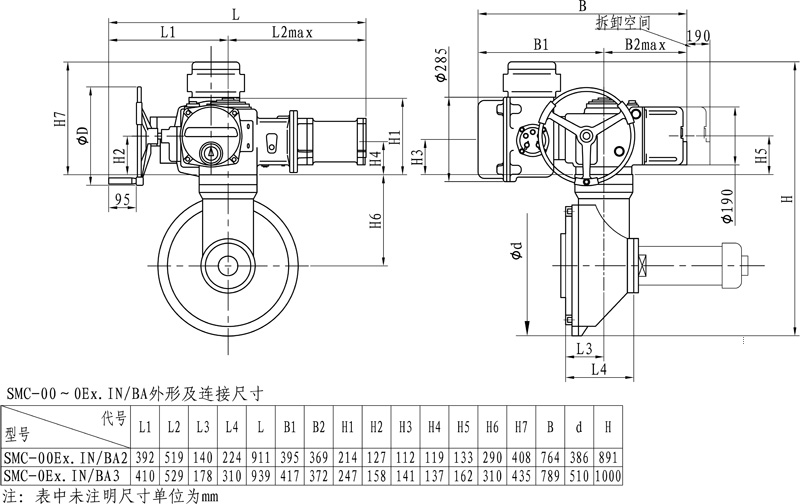 SMC/BA系列電動裝置是SMC系列中小轉矩多回轉電動裝置與BA圓錐齒輪減速器的一種組合型式,它適合閘閥、截止閥等多回轉閥門的驅動控制。SMC/BA電動裝置具有以下特點:以較小轉矩規格的SMC電動裝置與BA減速器組合可獲得更大的輸出轉矩。在輸出轉速允許的條件下,選用該產品能夠提高所選電動裝置規格的通用性,便于產品的使用、維護。