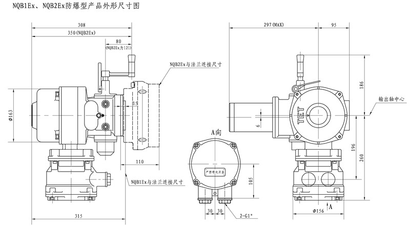 NQB1 NQB2 電動裝置在繼承QB1QB2 優點的同時又增設了產品的使用功能,并且改進了控制機構。通過改型設計的 NQB1NQB2 電動裝置不僅提高了整體性能并且更實用、可靠。 NQB1 NQB2 電動裝置的定位仍為經濟型,它適用于小口徑球閥、蝶閥、旋塞閥等閥瓣工作中90°回轉閥門和類似機構的控制。該產品與閥門組合后可廣泛地應用于石油、化工、電力、市政、冶金、食品、輕工等工業領域的管道控制系統。
