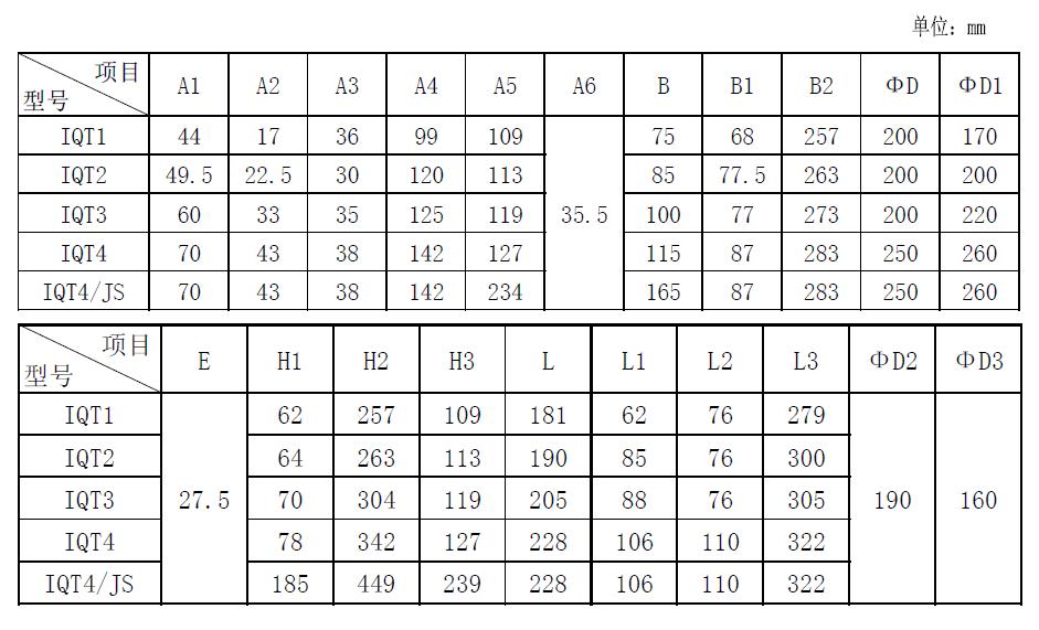 IQT1~IQT4/JS(380V三相電機)系列技術(shù)參數(shù)表