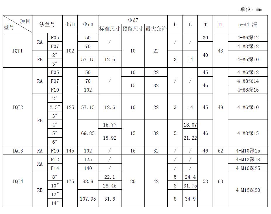 IQT1~IQT4/JS(220V單相電機)系列技術參數表