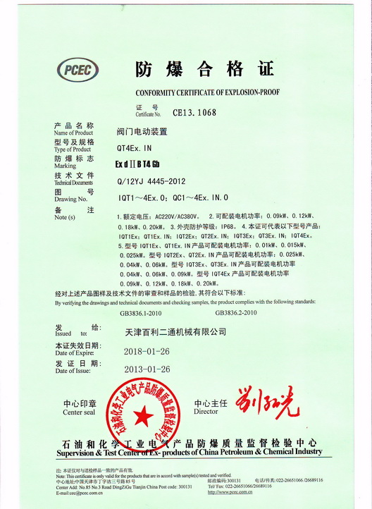 IQT1-4Ex Conformity Certification of Explosion-proof