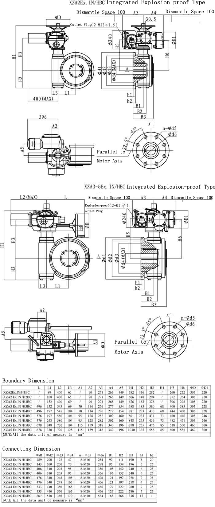 XZA/HBC series ,the combination of XZA series multi-turn electric actuators and HBC worm speed reducer , was used to control ball valve ,butterfly valve and other part-turn valve actuators.This series actuators have features as firm constructure, multiple standard,large torque rang,stable output and self-locking ability.In order to gear into valve rod,HBC has a involute serration joint.It is easy to test and adjust.